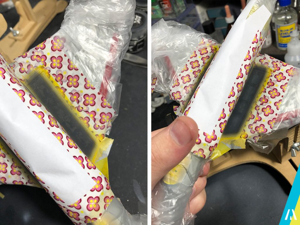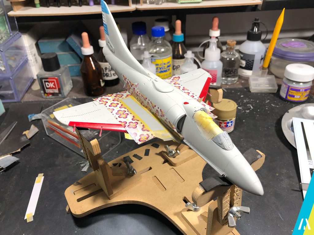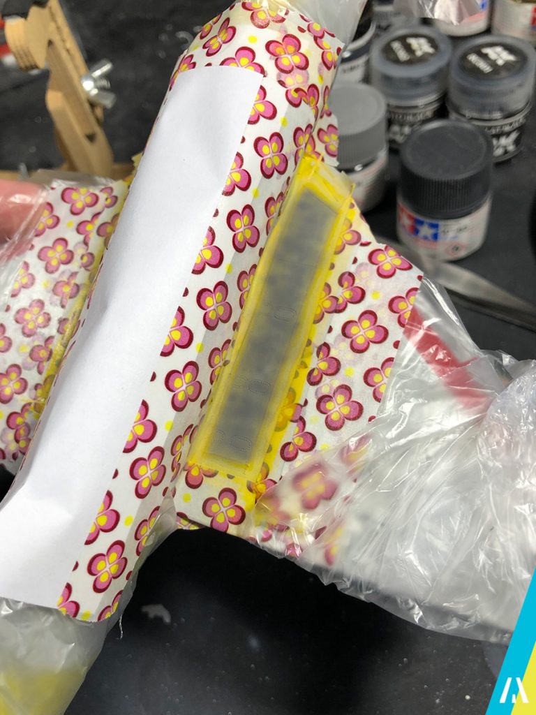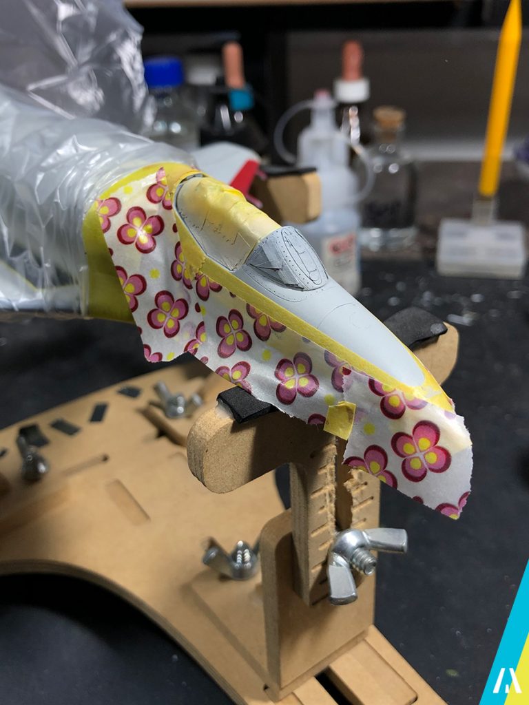 Obviamente el primer paso fue enmascarar todo, tarea que no fue fácil porque uno de los lados esta bastante cerca del fuselaje y eso complica un poco el proceso.