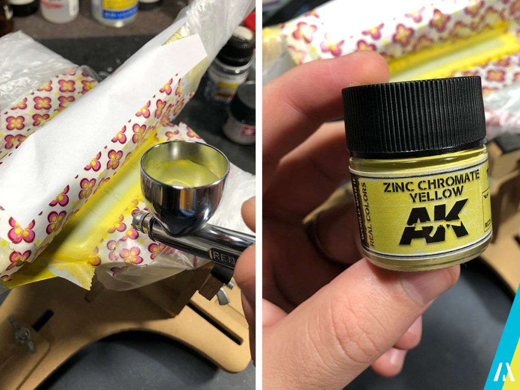 Las pinté con Zinc Chromate Yellow (RC263) y luego enmascare las lineas con las tiras más finas que pude cortar usando la guía de corte de Infini EasyCutting, totalmente recomendables para este tipo de trabajos!