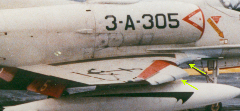 Un detalle que no siempre esta presente en este esquema es una linea gris que va en el borde de ataque del ala y los alerones de la cola, en el 305 que estoy armando yo, vi varias fotos donde se ve este detalle así que tuve que pintarlo, por suerte no es algo muy complicado.