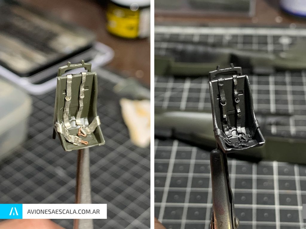 Para la pintura no hay mucho que agregar, es como pintar cualquier otro asiento o pieza de nuestro modelo. Color base y detalles a pincel… luego efectos y demás.