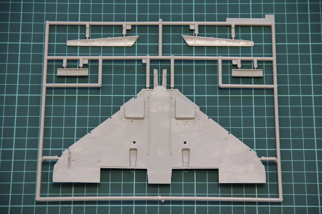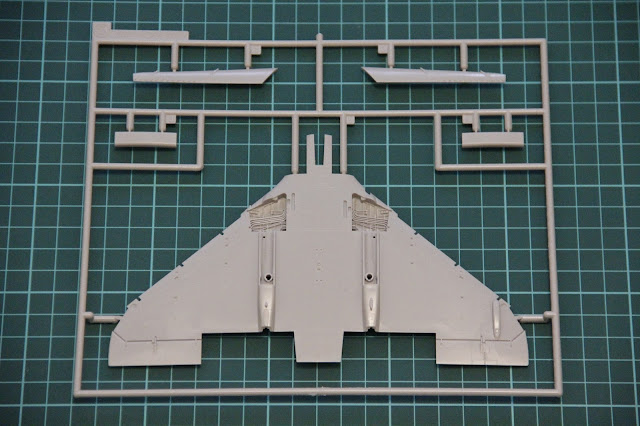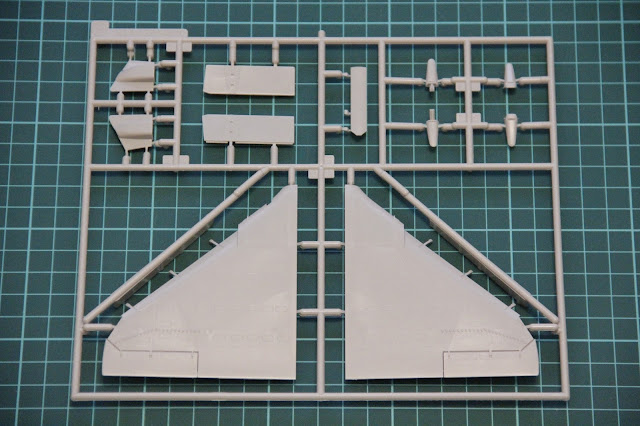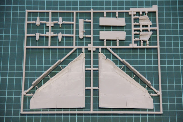 En el primer sprue vemos la parte superior de las alas y algunos detalles externos como las tapas del tren de aterrizaje y los flaps. Por supuesto las alas tienen paneles incisos y remachado.