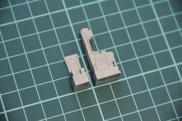 El kit viene con el asiento en resina, Brassin (Las resinas de Eduard). La calidad de moldeado es excelente, y esta resina es definitivamente mucho mejor que el asiento de plástico que viene con el kit. De todas formas, podemos mejorar aun más esta resina gracias a los FG provistos con el kit.