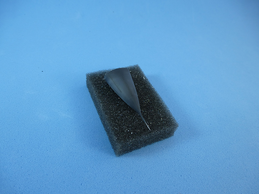 Decidí mostrar los flaperones caídos. Fui deslizando un bisturí nuevo por el surco que lo separa del ala, por arriba y abajo, secuencialmente, sin llegar a cortarlo. Una vez suelto, cuidadosamente, se doblan hasta la posición deseada y se agrega pegamento extra thin de Tamiya para fijar. La mayor dificultad radica en que la porción más cercana al fuselaje viene pegada a este, por lo que debe ser cortado aparte y pegado al resto de flaperon en el ala. El resto es masilla y lija.