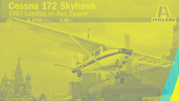 Este hermoso Cessna 172 no es un kit new tool, tiene su origen en el modelo de ESCI allá por 1981, pero a pesar de los años, hoy sigue siendo un hermoso kit, la novedad en este caso son las calcas, gracias a Italeri, podemos tener en nuestra vitrina el modelo que uso Mathias Rust para aterrizar sobre la Plaza Roja de Moscú el 28 de Mayo de 1987, para quienes no estén al tanto de la historia, pueden encontrar más info acá.