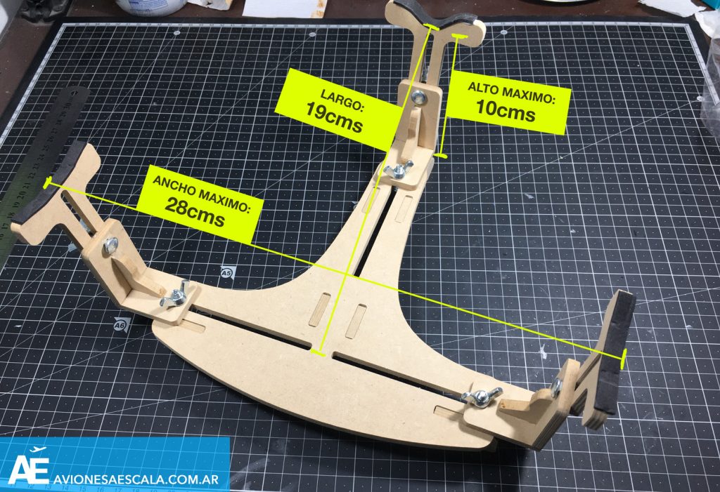 Ahí se ven las medidas a modo de referencia para que se den una idea de las posibilidades de la herramienta, por supuesto que esto no nos limita solo a maquetas de esa medida, lamentablemente no tengo armadas maquetas grandes para poder probarlas, pero estoy seguro que incluso podemos usarla para sostener un C-130 Hercules en 1/72 sin problemas.