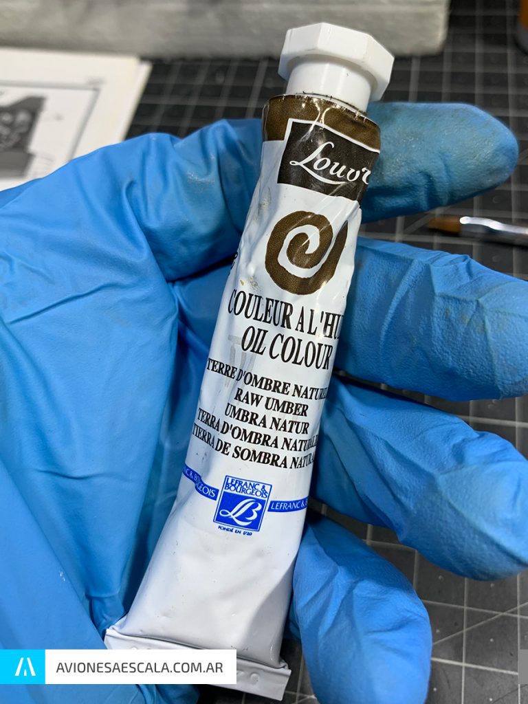 La pintura que use en este caso son las lacquer de Hataka (en el video usan tamiya si mal no recuerdo), el white spirit que usé es el de Dukel (Tapon verde) y el óleo es de la marca Louvre (probé con oleos alba también y no me dieron el mismo resultado)