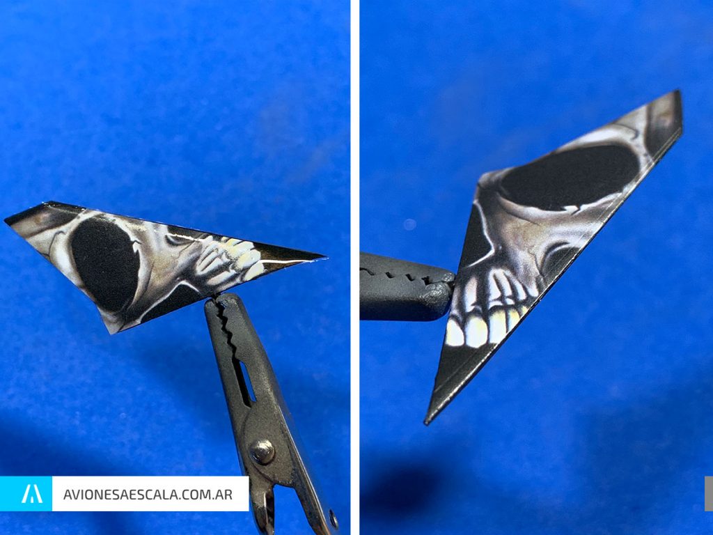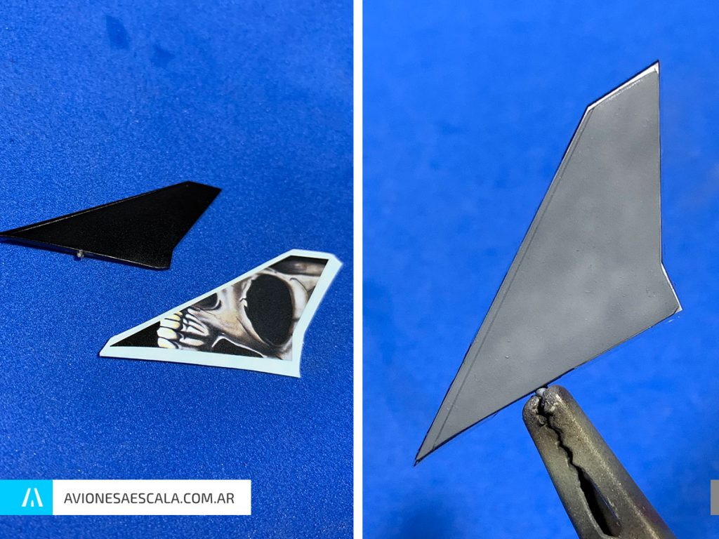 Después de pegar estas calcas, un poco por ansiedad y otro poco por «sacarme el laburo más pesado de encima» pase a las calcas que van en la cola.