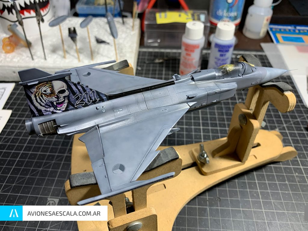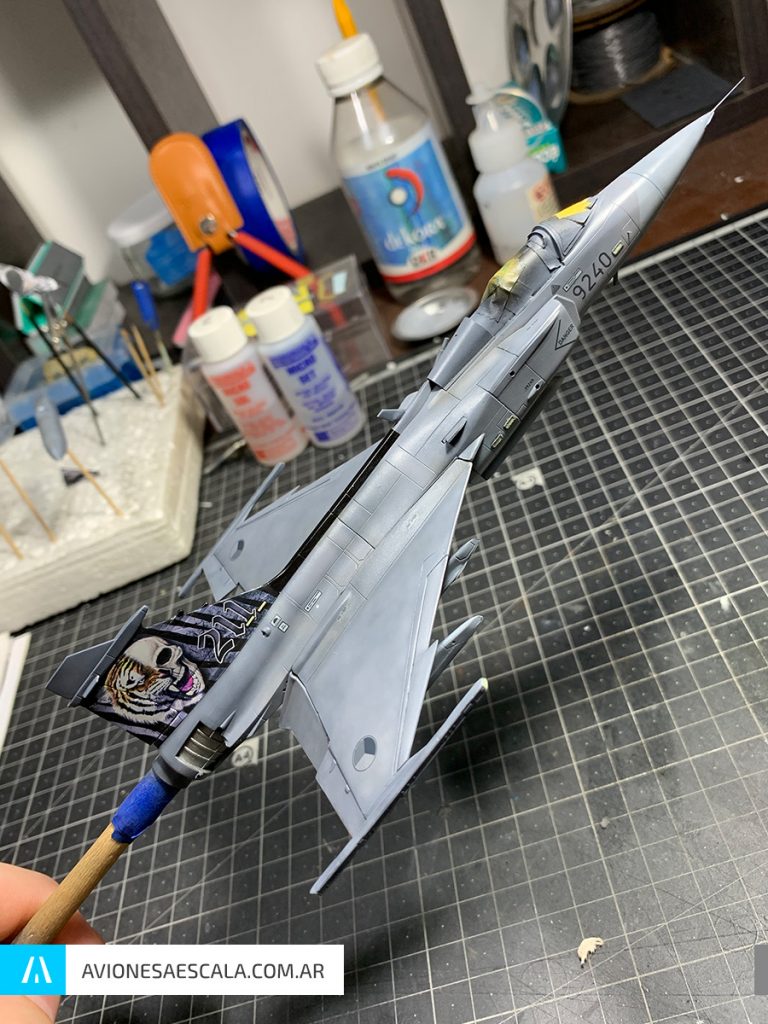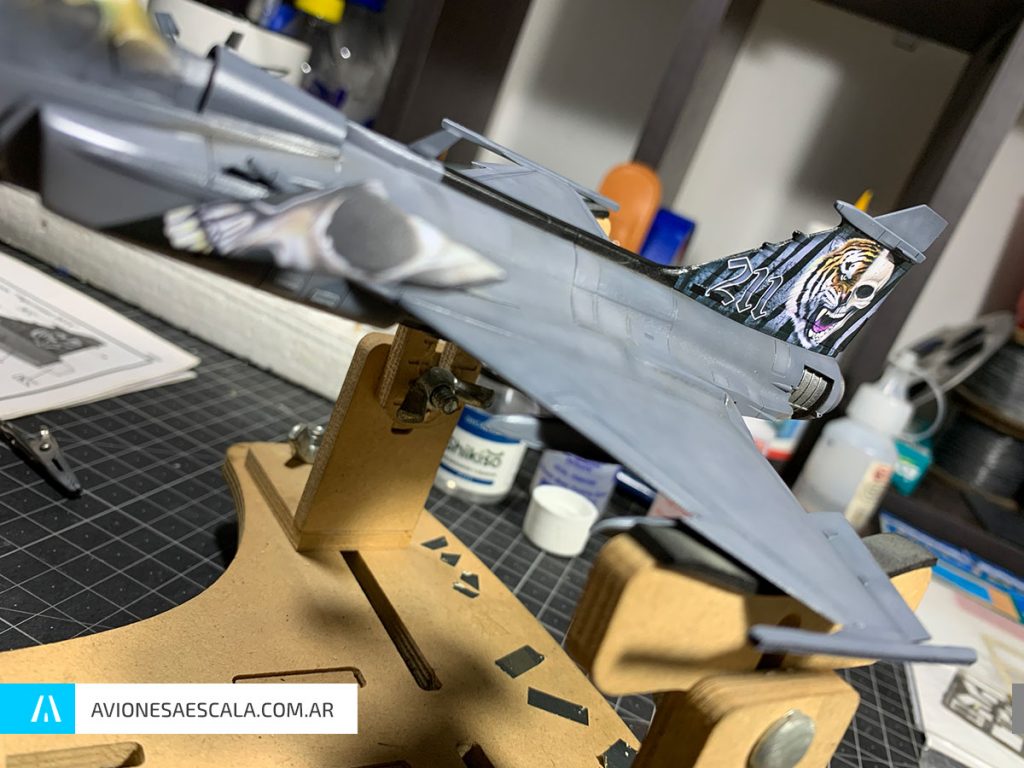 Comencé por las calcas que van en los canards, que no presentaban ninguna dificultad ya que practicamente iban sobre una superficie plana con apenas un panel…
