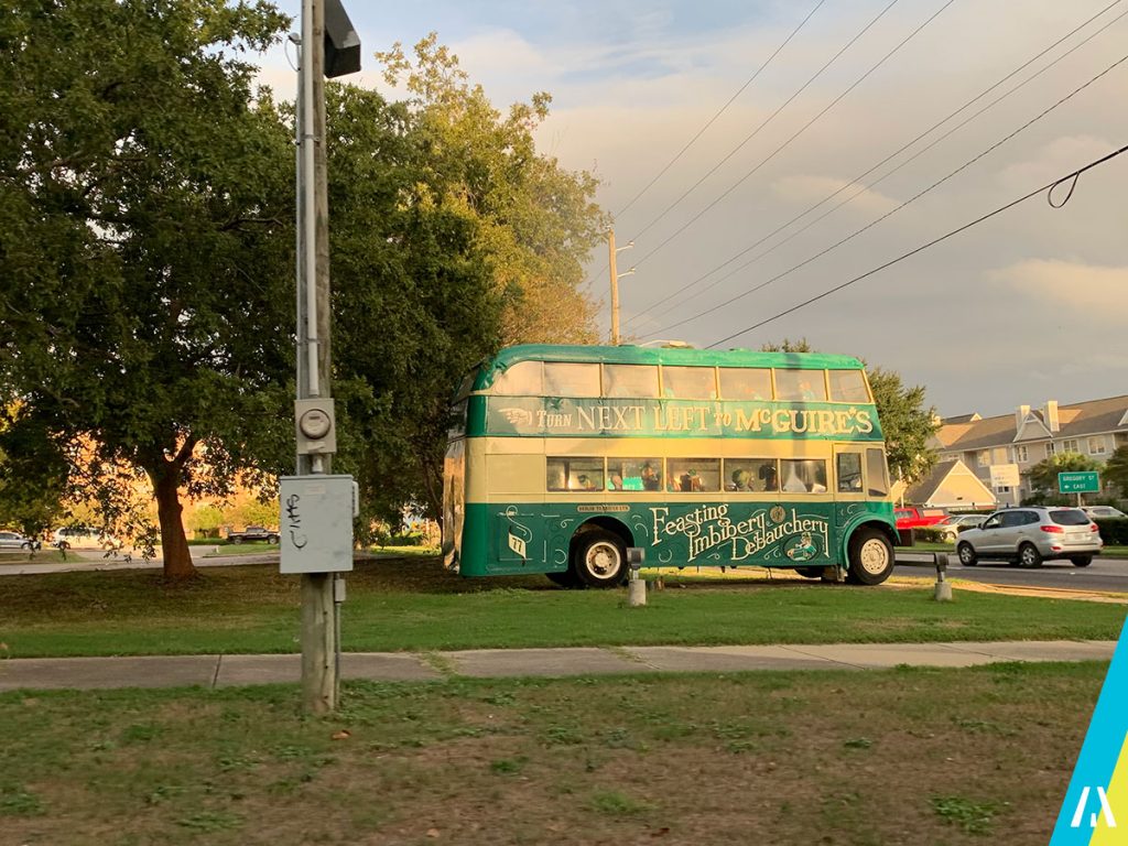 Antes de llegar nos encontramos con un bus que nos indica donde esta el pub…