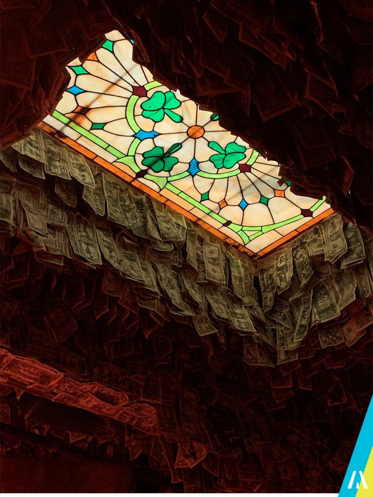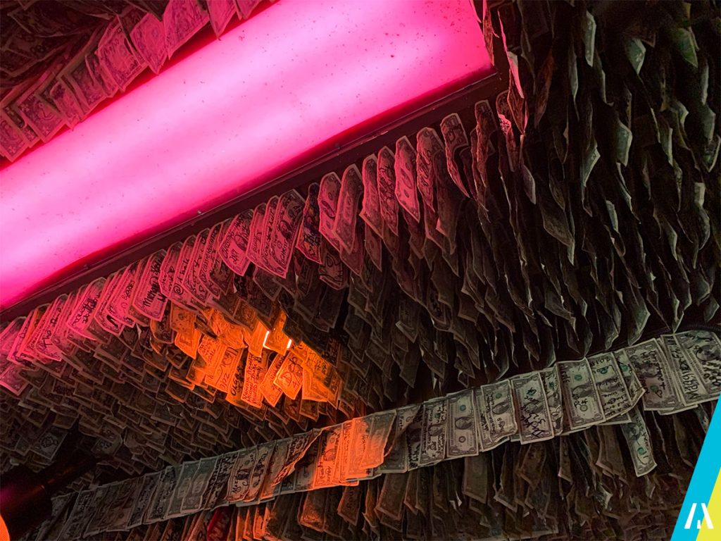 Lo primero que me llamó la atención cuando entre, son los billetes de 1 USD que tienen colgados en el techo… según dice en la web, tienen mas de 1 Millon 😱 💵💵💵💵💵