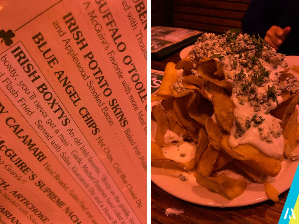 En la foto de arriba, las «Blue Angels Chips», unas papas fritas (calientes) con una salsa de queso roquefort (fría), que combinación… IMPRESIONANTES!