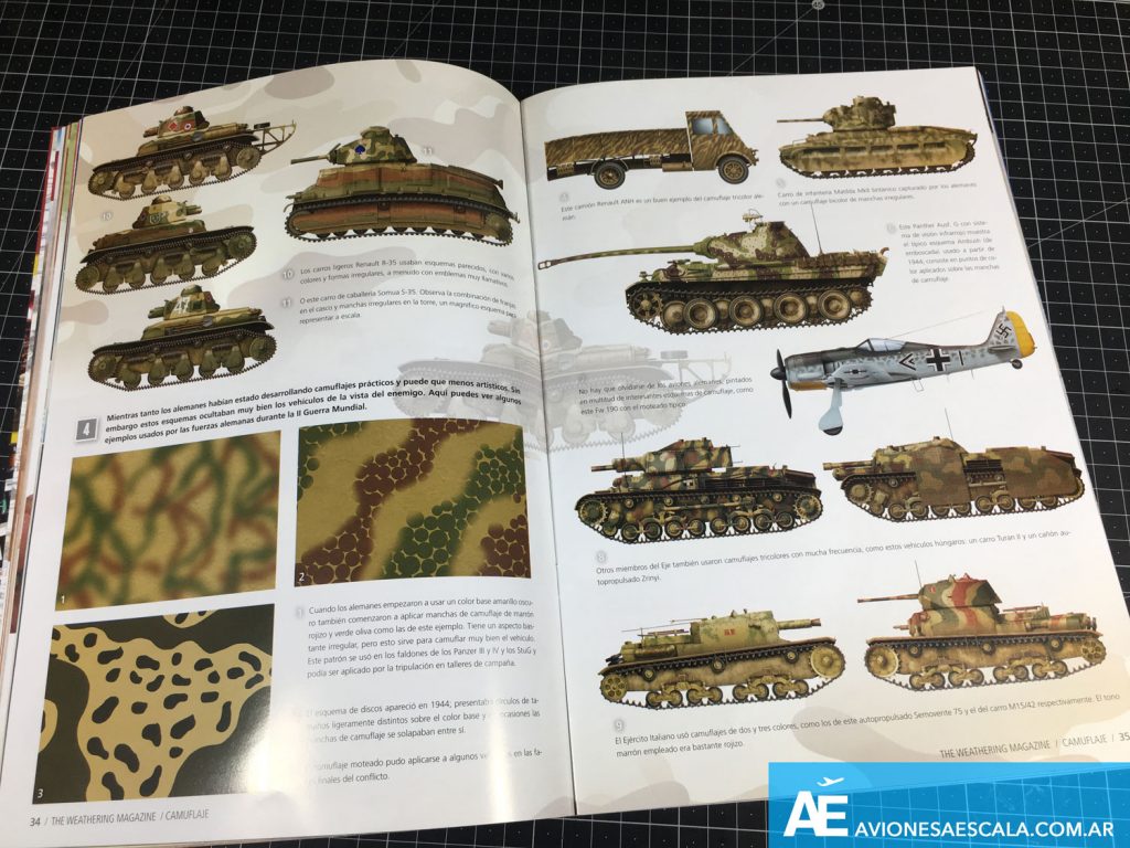 Otra nota interesante que nos encontraremos en esta revista, donde nos muestra y explican brevemente los camuflados más utilizados por las distintas fuerzas en la Segunda Guerra Mundial.